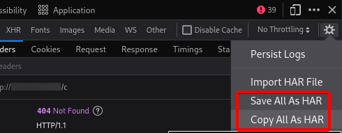 To extract these, save the network log as HAR data: