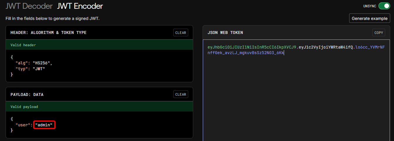 }The JWT can be decoded with, e.g., jwt.io or jwt_tool, resulting in this payload: